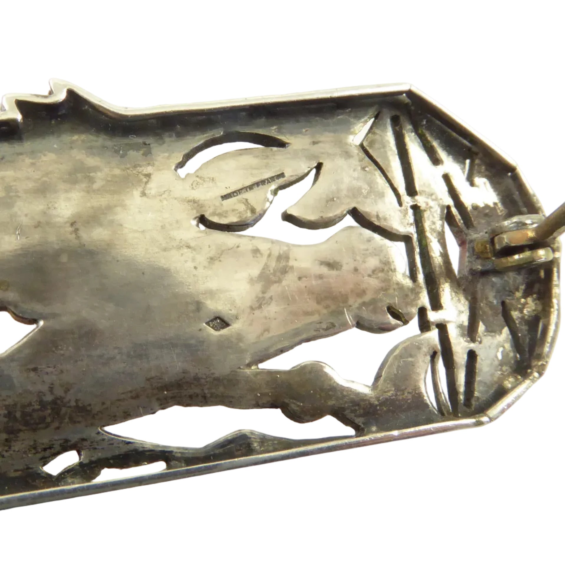 The brooch is French, hallmarked on the back, and made of silver.